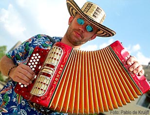 VallenatoVallenato is nog Colombiaanser dan Cumbia, en dankt zijn naam aan de Colombiaanse stad Valledupar, hoofdstad van departemento Cesar, de provincie waar deze muziek zijn oorsprong heeft. "Valle d'upar" betekent "Vallei van het opperhoofd" en geeft al weg dat deze stad veel invloeden heeft van de oorspronkelijke indianenstammen. De Gaita, een indianenfluit, was belangerijk bij de ontwikkeling van de Vallenato-muziek en hoewel deze rol is overgenomen door de accordeon, klinkt er vaak nog een gaita mee in de muziek, bijvoorbeeld bij Carlos Vives. Vandaag de dag wordt de accordeon niet zeldzaam verdrongen door gitaren en synthesizers.Ik heb ook een site over de Acordeon Vallenato Veel oude Vallenato-liedjes worden tegenwoordig gebruikt als Bachata-liedjes, de Bachata-groove zit in dezelfde familie als de Vallenato-Paseo-groove. Vallenato is geen muzieksoort maar een muziekstroming, net als Rock. Een kleine opsomming: