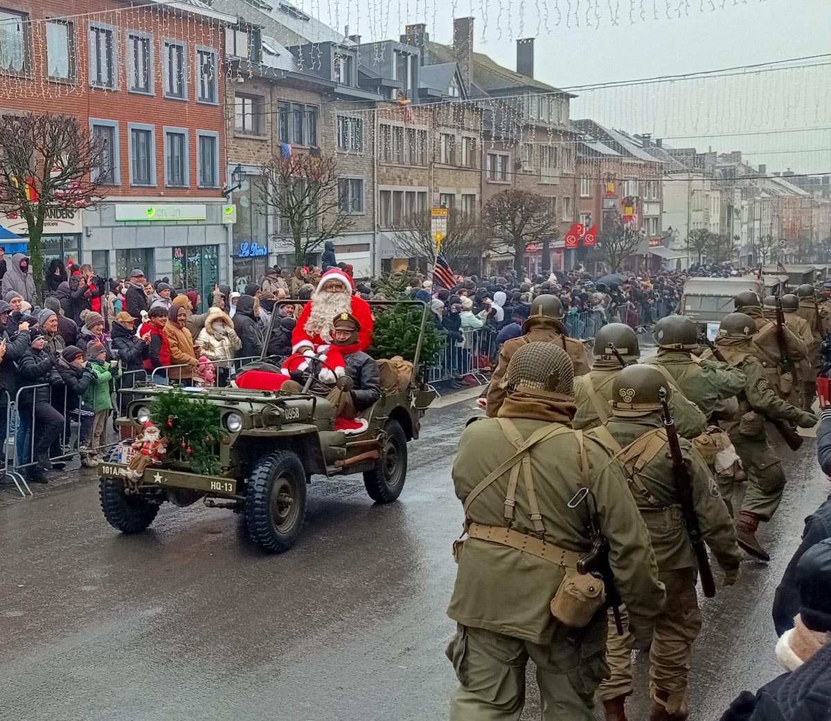 De kerstman is ook van de partij in Bastogne